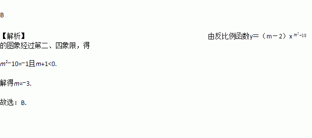 若反比例函数y=(m-2)x的图象经过第二、四象限,则m的值为( )