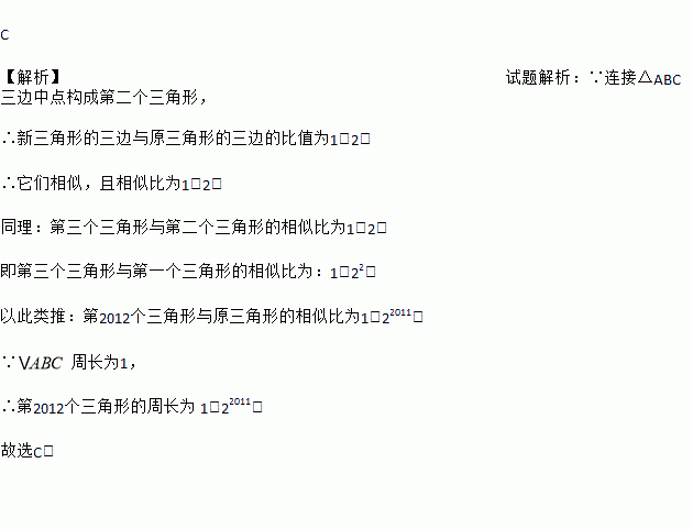 已知△ABC的周长为1,连接其三边中点构成第二个三角形,再连接第二个三角形的中点构成第三个三角形,以此类推,则第2012个三角形的周长为( )