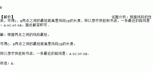 如图,小华的家在A处,书店在B处,星期日小明到书店去买书,他想尽快的赶到书店,请你帮助他选择一条最近的路线( ).