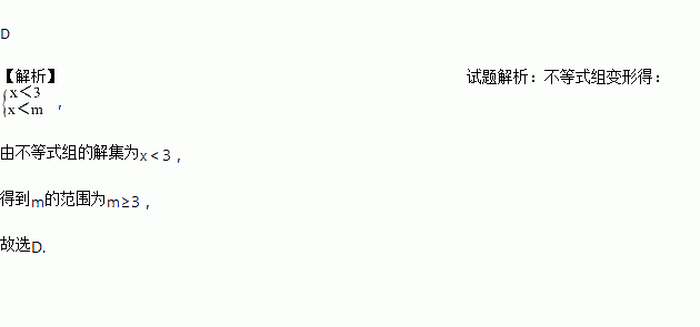 关于x的不等式组的解为x<3,则m的取值范围是( )