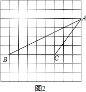 (2)在图2中,画一个有一个角是钝角的等腰三角形,且面积等于10.