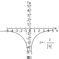 (2)首先把y=$\frac{1}{x}$或y=-$\frac{1}{x}$的图象的横坐标不变,纵坐标扩大到原来的2倍;然后取函数y=$\frac{2}{x}$与y=-$\frac{2}{x}$的两个图象在y轴下方的部分,即可画出y=-$\frac{2}{|x|}$的图象.