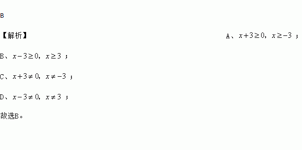 下列函数中,自变量的取值范围为x≥3的是( )。