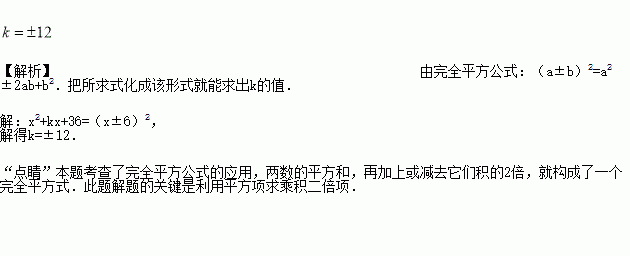 若 +kx+36是一个完全平方式,则k= ___________ 。
