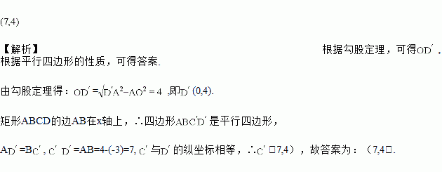 ,边AD长为5. 现固定边AB,“推”矩形使点D落在y轴的正半轴上(落点记为![]()