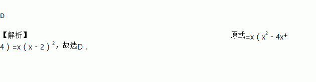 D 【解析】原式=x(x2﹣4x+4)=x(x﹣2)2,故选D.