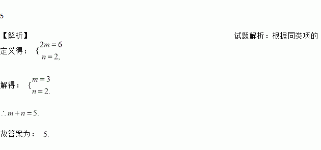若5x2m y2和-7x6 yn是同类项,则m +n=_______ .