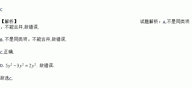 C 【解析】试题解析:A.不是同类项,不能合并.故错误. B. 不是同类项,不能合并.故错误. C.正确. D. 故错误. 故选C.