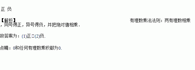两个非零有理数相乘,同号得_____,异号得_____.