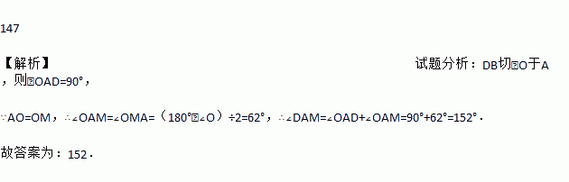 如图,DB切⊙O于点A,∠AOM=66°,则∠DAM=_____度.