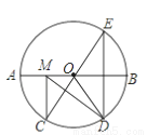 如图,在⊙O中,AB是⊙O的直径,AB=10, ,点E是点D关于AB的对称点,M是AB上的一动点,下列结论:①∠BOE=60°;②∠CED=∠AOD;③DM⊥CE;④CM+DM的最小值是10,其中正确的序号是______.