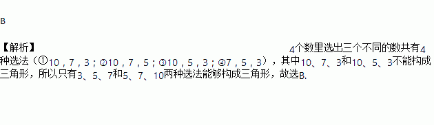 长为10, 7, 5, 3的四根木条,选其中三根首尾顺次相连接组成三角形,选法有( )