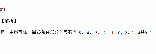 小明写作业时不慎将墨水滴在数轴上,根据图中的数值,判定墨迹盖住部分的整数共有 个.
