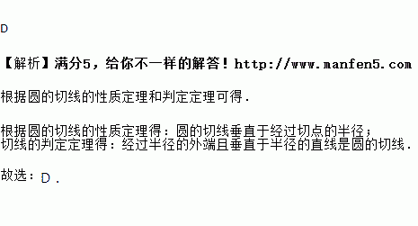 C. 经过半径的外端的直线是圆的切线 D. 圆的切线垂直于过切点的半径