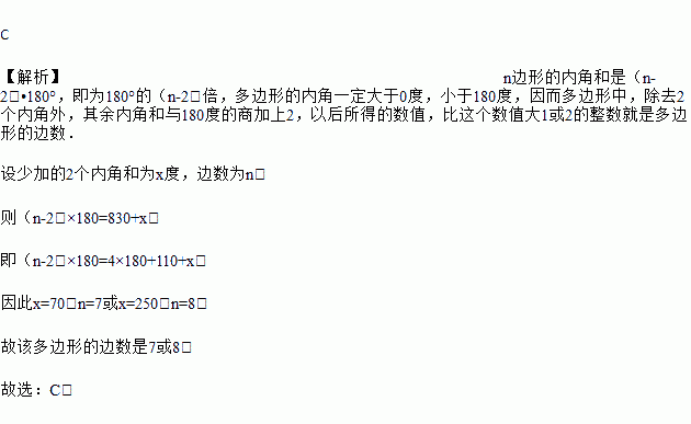 A. 7 B. 8 C. 7或8 D. 无法确定