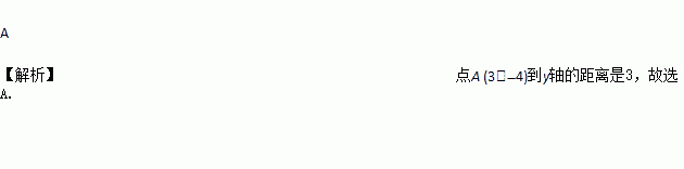点A在直角坐标系中的坐标是(3,?4),则点A到y轴的距离是( )