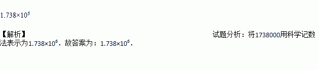 月球的半径约为1738000米,1738000这个数用科学记数法表示为___________.