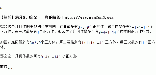 用小正方体搭一个几何体,使它的主视图和左视图如图所示,则组成这个几何体的小正方体最多有( )