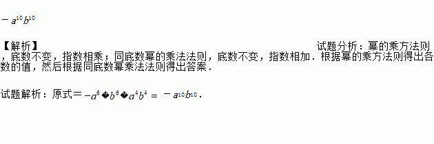 -a10b10 【解析】试题分析:幂的乘方法则,底数不变,指数相乘;同底数幂的乘法法则,底数不变,指数相加.根据幂的乘方法则得出各数的值,然后根据同底数幂乘法法则得出答案. 试题解析:原式=-a10b10.