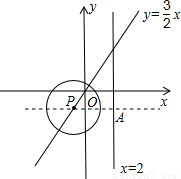 ∴当⊙P与直线x=2相切时,点P的坐标为(5,)或(-1,-);