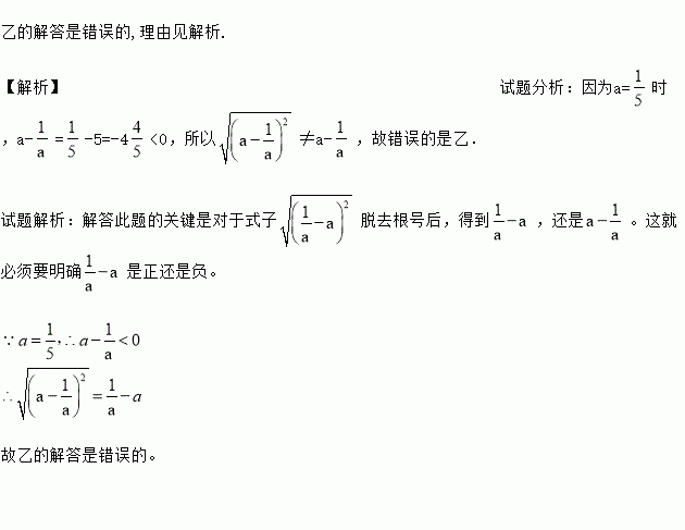 (满分6分)对于题目“化简并求值: ,其中”,甲、乙两人的解答不同,