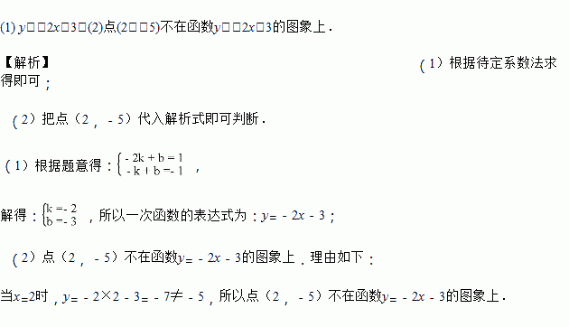 (2)点(2,-5)是否在这个一次函数的图象上?请说明理由.