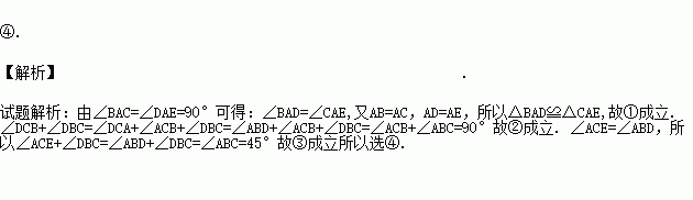 已知:如图在△ABC,△ADE中,∠BAC=∠DAE=90°,AB=AC,AD=AE,点C,D,E三点同一条直线上,连接BD,BE.以下四个结论: