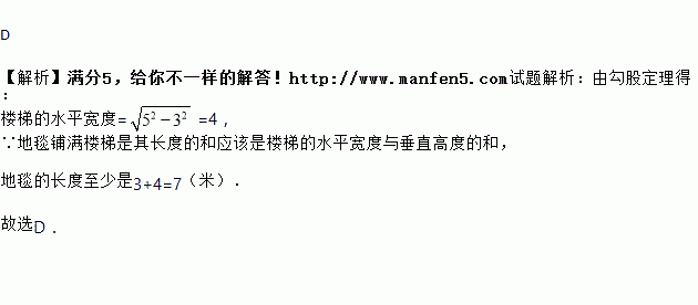 如图是一个楼梯的示意图,测得楼梯的长为5米,高3米,计划在楼梯表面铺地毯,地毯的长度至少需要( )米