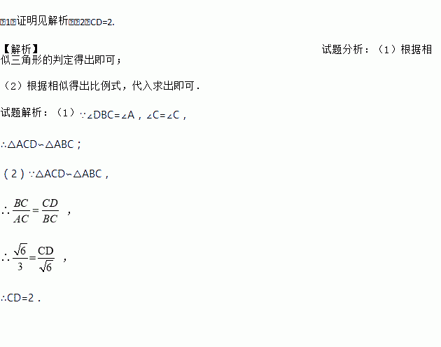(1)求证:△ACD∽△ABC;