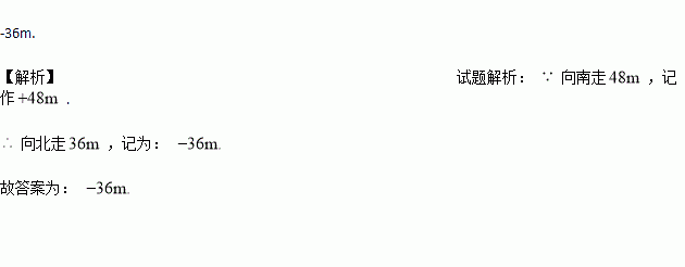 如果向南走48m,记作+48m,则向北走36m,记为 .