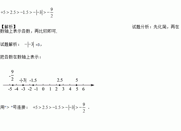 用数轴上的点表示下列各有理数, , , , , 并把它们按从大到小的顺序用“”号连接起来.