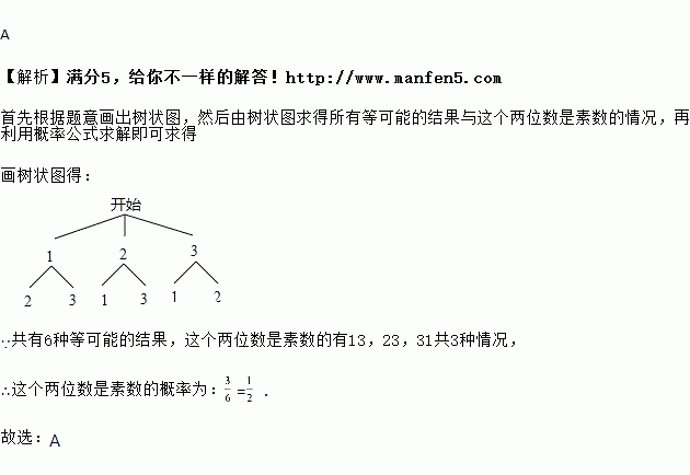 如果从、、这三个数字中任意选取两个数字,组成一个两位数,那么这个两位数是素数的概率等于( )