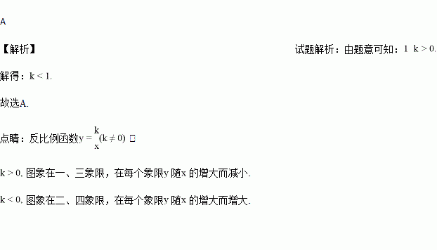 在反比例函数y=的图象的任一支上,y都随x的增大而减小,则k的值可以是( )