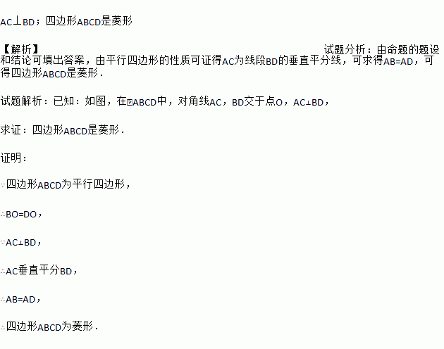 已知:如图,在?ABCD中,对角线AC,BD交于点O, .