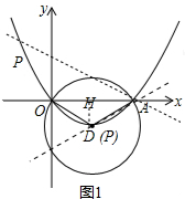 (2)当⊙D′恰与直线AD相切时,四边形ODAD′是正方形,△OAD是等腰直角三角形,易得D点坐标和和DA的长,进而求出抛物线解析式;
