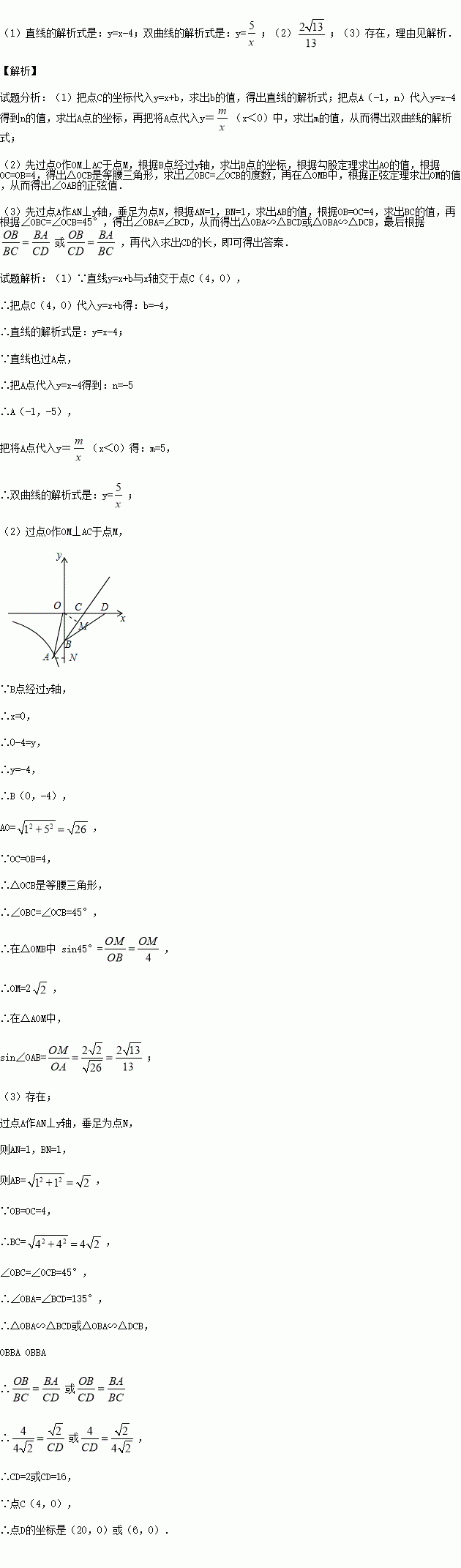 直线y=x+b与x轴交于点C(4,0),与y轴交于点B,并与双曲线y=
