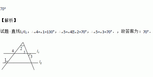如图,直线l1∥l2,若∠1=130°,∠2=60°,则∠3=__________.