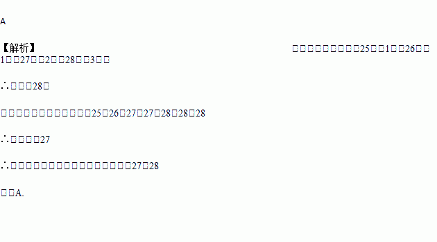 A. 27,28 B. 27.5,28 C. 28,27 D. 26.5,27