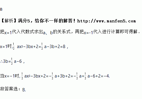 的值是8,则当x=-1时,这个代数式的值是( )