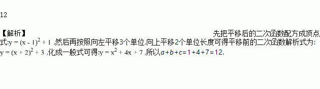 把抛物线y=ax2+bx+c的图象先向右平移3 个单位长度,再向下平移2 个单位长度,所得图象的解析式是y=x2﹣2x+2则a+b+c= _____.