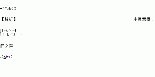 代数式1-k的值大于-1而又不大于3,则k的取值范围是__________.