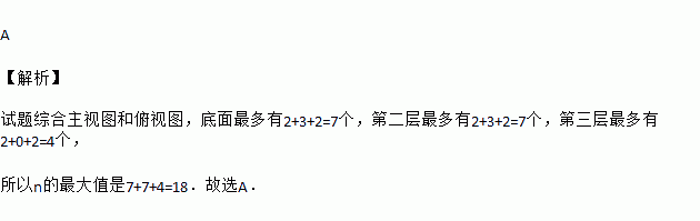 由个相同的小正方体堆成的几何体,两种视图如右图所示,则的最大值是( )