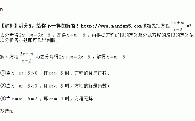 ①当m>-6时,方程的解是正数;②当m<-6时,方程的解是负数;③当m=-4时,方程无解