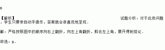 将一张正方形纸片按如图1,图2所示的方向对折,然后沿图3中的虚线剪裁得到图4,将图4的纸片展开铺平,再得到的图案是( )