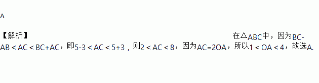 如图,在平行四边形ABCD中,AB=3cm,BC=5cm,对角线AC,BD相交于点O,则OA的取值范围是( )