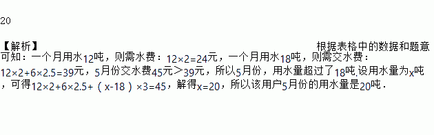 某城市自来水收费实行阶梯水价,收费标准如下表所示,用户5月份交水费45元,则所用水为 方。