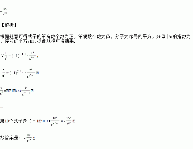 一组按规律排列的式子:,﹣,,﹣,…(a≠0),其中第10个式子是_____.