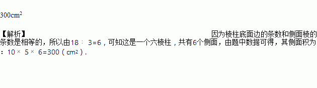 一个n棱柱有18条棱,一条侧棱长10cm,底面每条边长都是5cm,则这个棱柱的侧面积为___________.