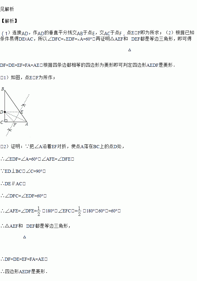 如图,在△ABC中,∠C=90°,∠A=60°,点E,F分别在AB,AC上,把∠A沿着EF对折,使点A落在BC上的点D处.