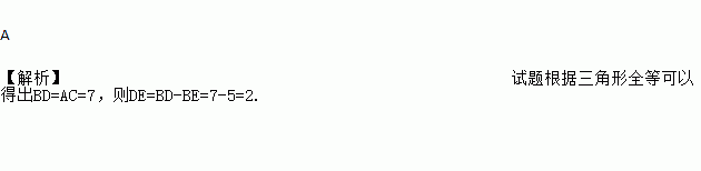 如图,△ABC≌△DCB,若AC=7,BE=5,则DE的长为()